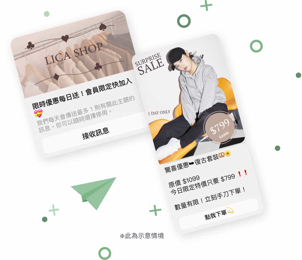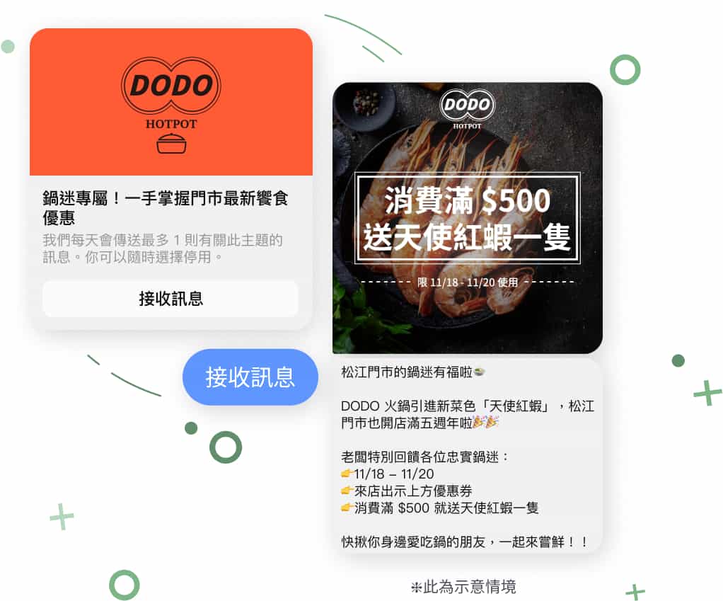 店面檔期活動、新品通知、優惠資訊,
